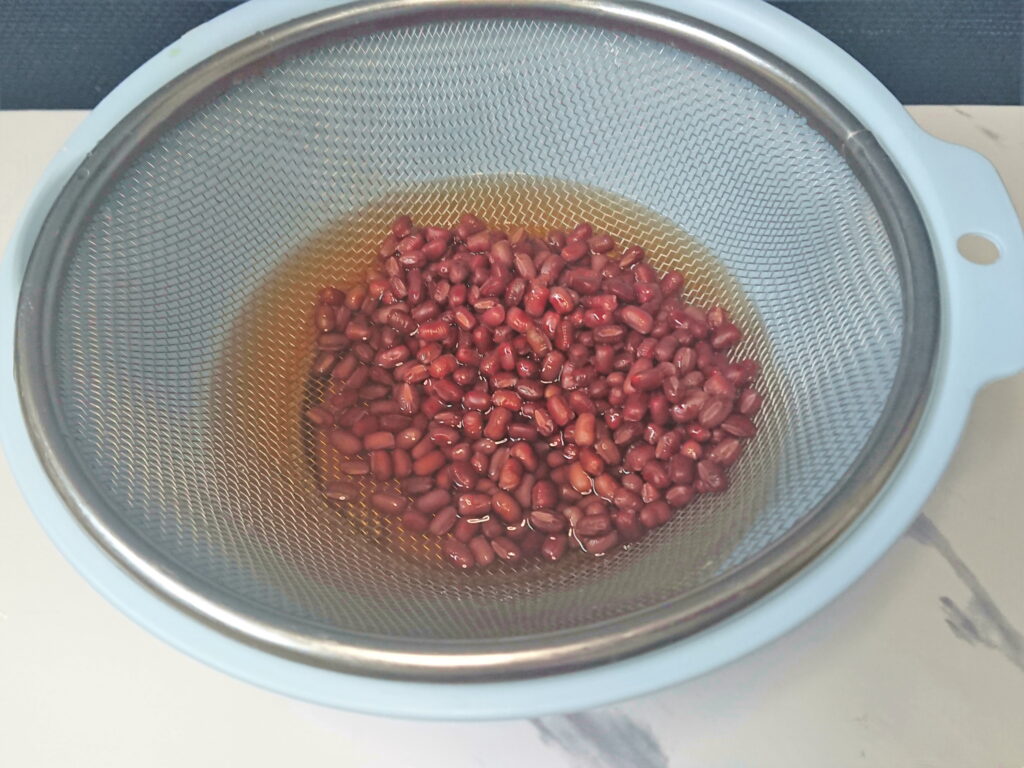 水に浸けてアク抜きしたジャガイモをザルを使って水切りをしたときのフリー画像です。